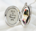 ロケットペンダントの左側に、シルバープレートにメッセージを加工して